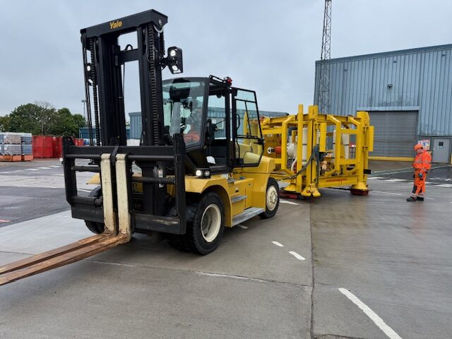 - Heavy-duty forklifts with specialised attachments for precision positioning