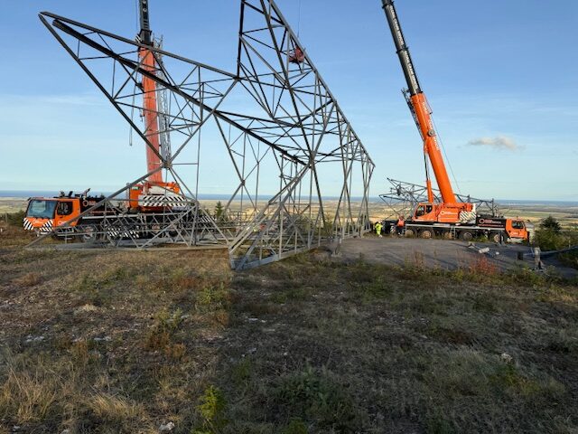 - Heavy steel lattice sections weighing several tonnes requiring controlled lifting and load management.