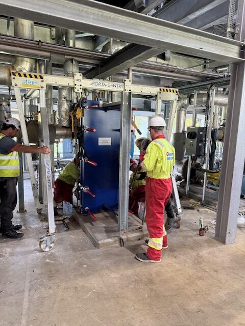 - Rigging of replacement heat exchangers using specialised lifting configurations.